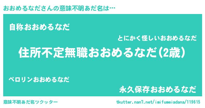 | ヘコむあだ名 | 『おおめるなだ(小並感)』『おおっぺ』 |