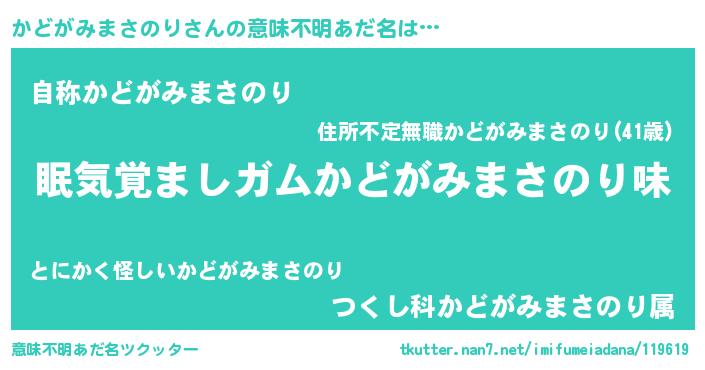 | ヘコむあだ名 | 『かどを』『かどがみまさのり(笑)』 |