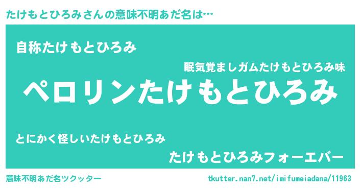 | ヒーロー風カッコイイあだ名 | 『スーパータケモトヒロミ』 |