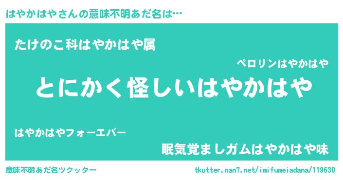 | 女子向けラノベタイトル風あだ名 | 『はやかはや様がみてる』 |