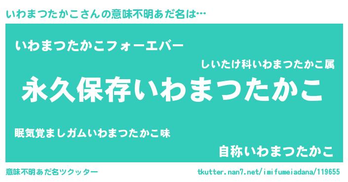 | 女子向けラノベタイトル風あだ名 | 『いわまつたかこの契約王妃』 |