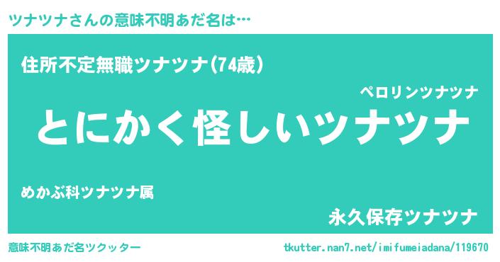 | 胡散臭い通販商品みたいなあだ名 | 『全米が絶賛したサプリメント…その名も「ツナツナ」』 |