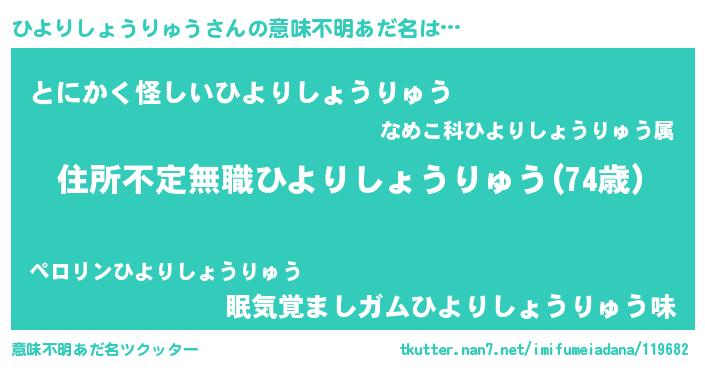 | ポケモン風あだ名 | 『ヒーヨイ』『ヒヒヨリショウリュウ』 |