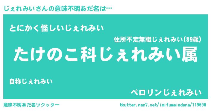 | 男性向けラノベタイトル風あだ名 | 『転生したらじぇれみいだった件』 |