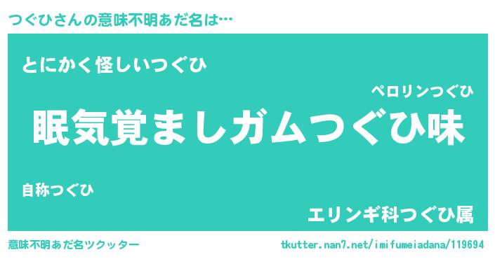 | ポケモン風あだ名 | 『ツックウザ』『ヒツグヒ』 |