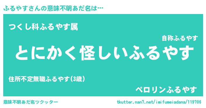 | 胡散臭い通販商品みたいなあだ名 | 『全米が絶賛したサプリメント…その名も「ふるやす」』 |