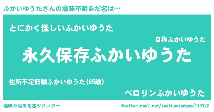 | ヒーロー風カッコイイあだ名 | 『ネオフカイユウタ』『黄金騎士フカ』 |