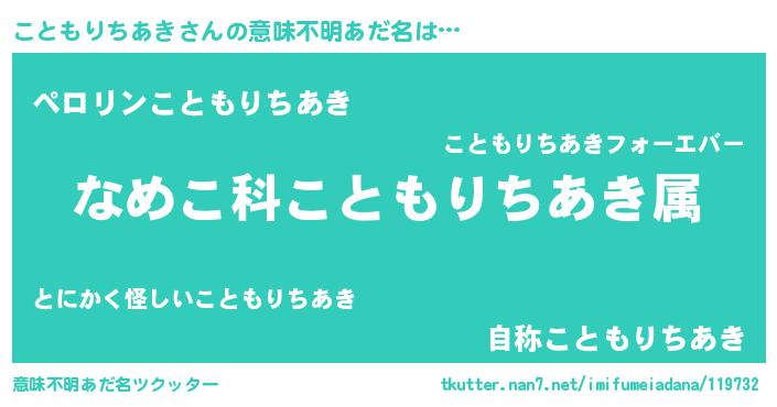 | 肩書あだ名 | 『こともりちあき大将』 |
