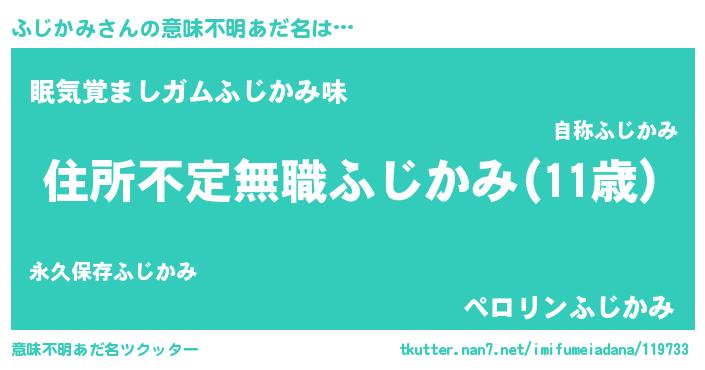 | 男性向けラノベタイトル風あだ名 | 『魔弾の王とふじかみ』『ふじかみの憂鬱』 |