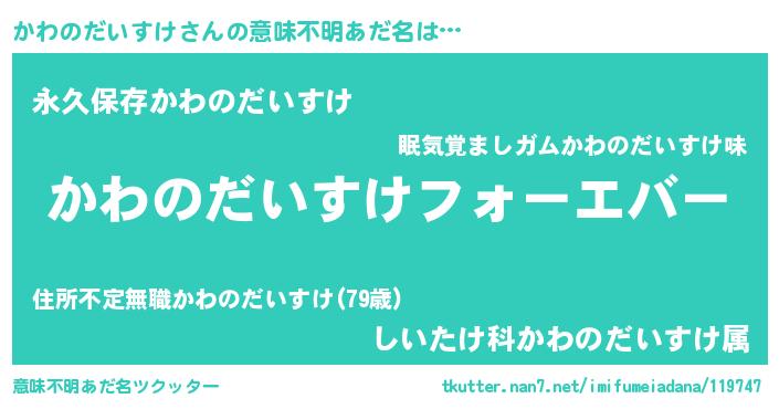 | 欧米人風あだ名 | 『かわのだいすけクリステル』 |