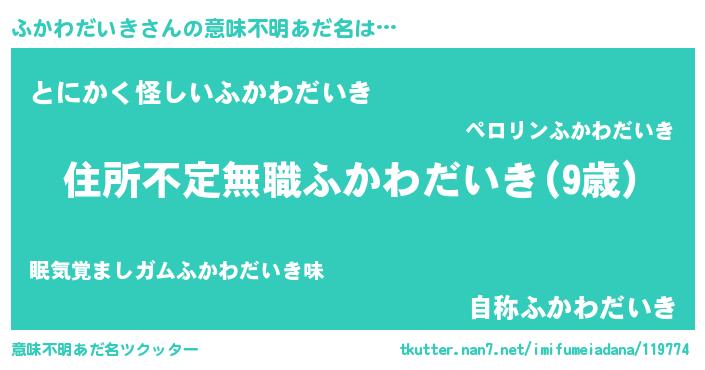 | 男性向けラノベタイトル風あだ名 | 『この素晴らしい世界にふかわだいきを!』 |