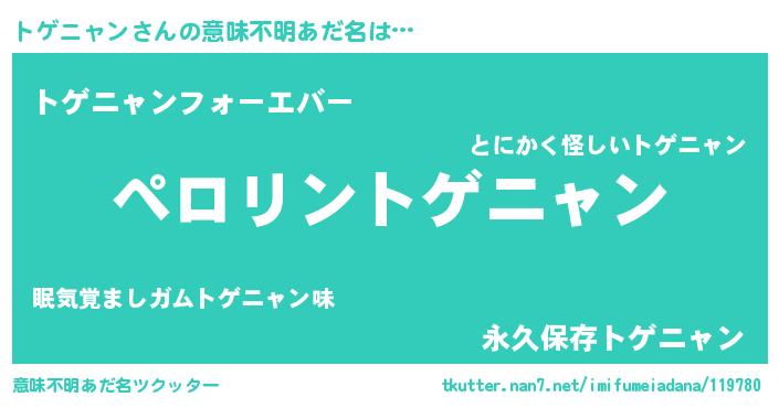 | 男性向けラノベタイトル風あだ名 | 『トゲニャンの憂鬱』 |