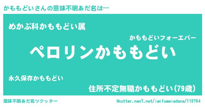 | 男性向けラノベタイトル風あだ名 | 『かももどいの憂鬱』 |