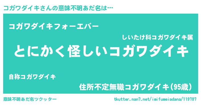 | 男性向けラノベタイトル風あだ名 | 『緋弾のコガワダイキ』 |