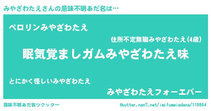 | 肩書あだ名 | 『みやざわたえ教授』『みやざわたえ店長』 |