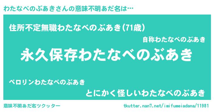 | 胡散臭い通販商品みたいなあだ名 | 『絶対に幸福をもたらす健康食品…その名も「わたなべのぶあき」』 |
