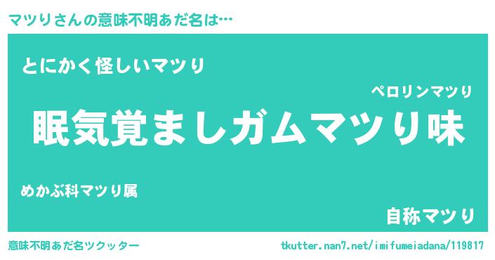 | 女子向けラノベタイトル風あだ名 | 『マツり恋絵巻』『マツりは平凡を望む』 |