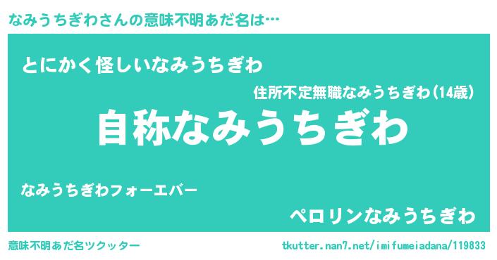 | 男性向けラノベタイトル風あだ名 | 『Re:なみうちぎわから始める異世界生活』 |