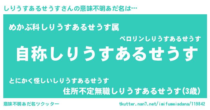 | 女子向けラノベタイトル風あだ名 | 『しりうすあるせうすアンティーク』 |