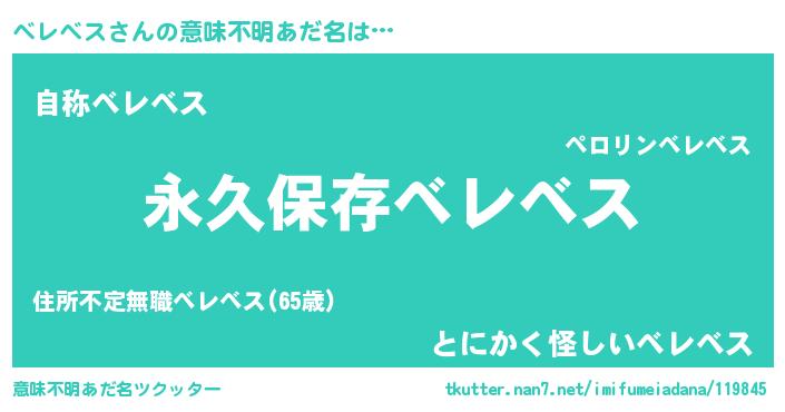 | ヒーロー風カッコイイあだ名 | 『ネオベレベス』『究極戦士ベレベス』 |