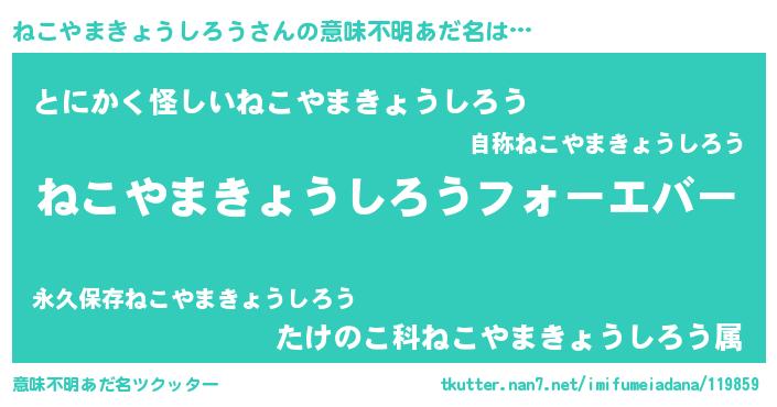 | ファンタジー風あだ名 | 『エターナルネコヤマキョウシロウー』 |