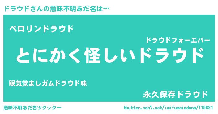 | 男性向けラノベタイトル風あだ名 | 『ダンジョンにドラウドを求めるのは間違っているだろうか』 |