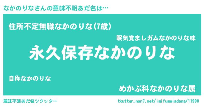 | 欧米人風あだ名 | 『なかのりな・ステッグマイヤー』 |