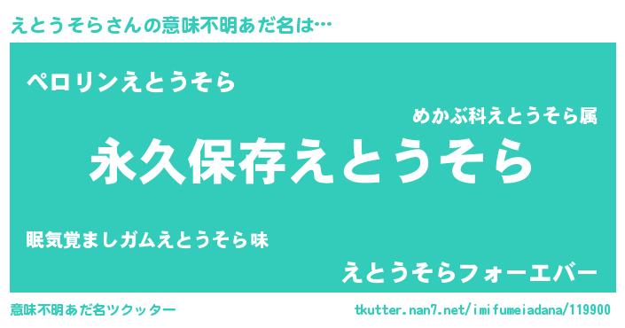 | ヘコむあだ名 | 『えとうそら(笑)』『えとにゅー』 |