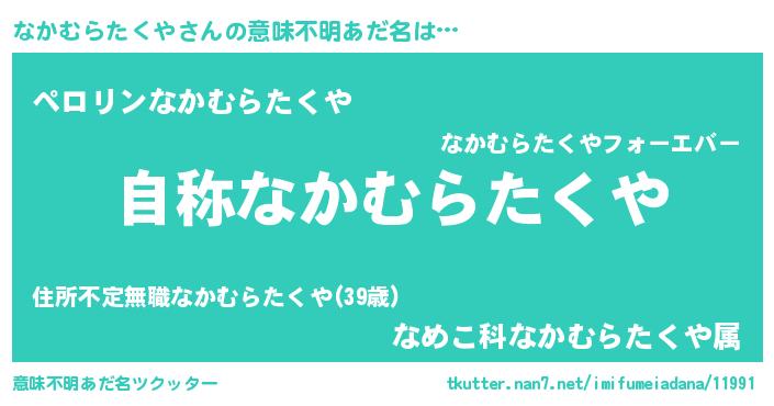 | 女子向けラノベタイトル風あだ名 | 『なかむらたくやストレイドッグス』 |