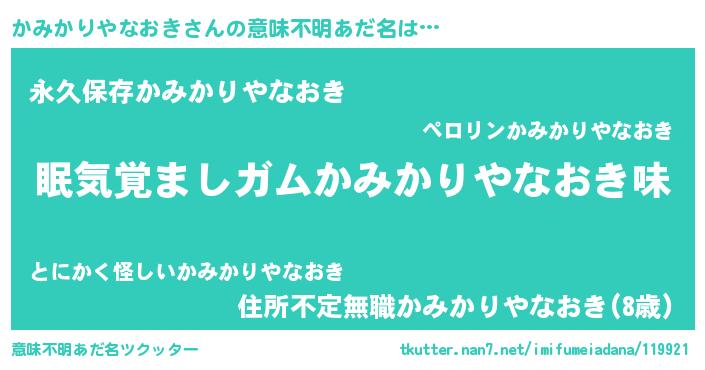 | ヘコむあだ名 | 『かみかりやなおき(遠い目)』『かみを』 |