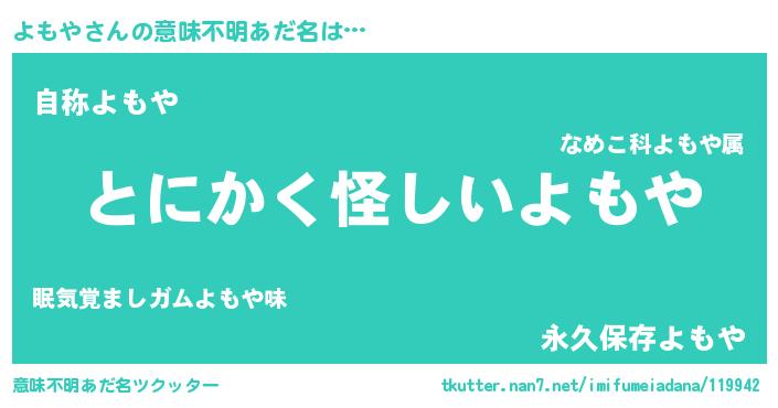 | 女子向けラノベタイトル風あだ名 | 『よもやは平凡を望む』『闇のよもや』 |