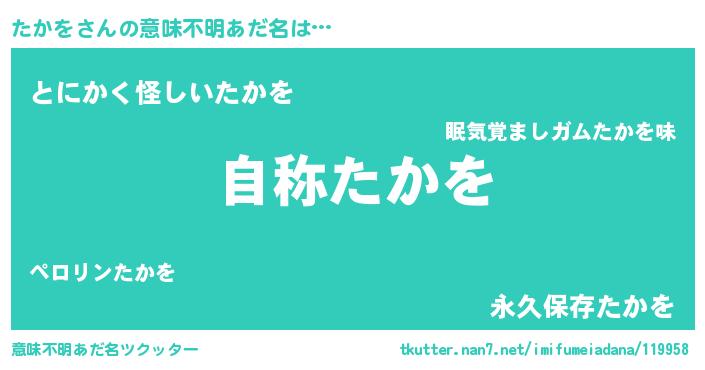 | ヒーロー風カッコイイあだ名 | 『サイバー戦士タカヲ』『暗黒騎士タカ』 |