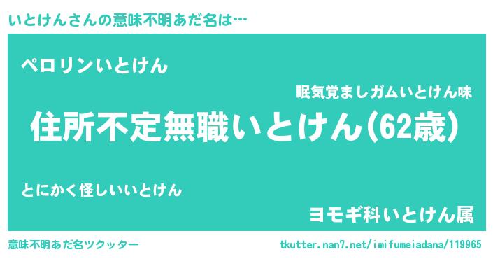 | 男性向けラノベタイトル風あだ名 | 『この素晴らしい世界にいとけんを!』 |