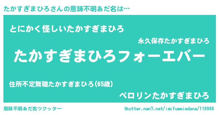 | 欧米人風あだ名 | 『たかすぎまひろクリステル』 |