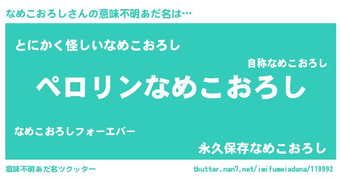 | 欧米人風あだ名 | 『アンジェラ・なめこおろし』 |