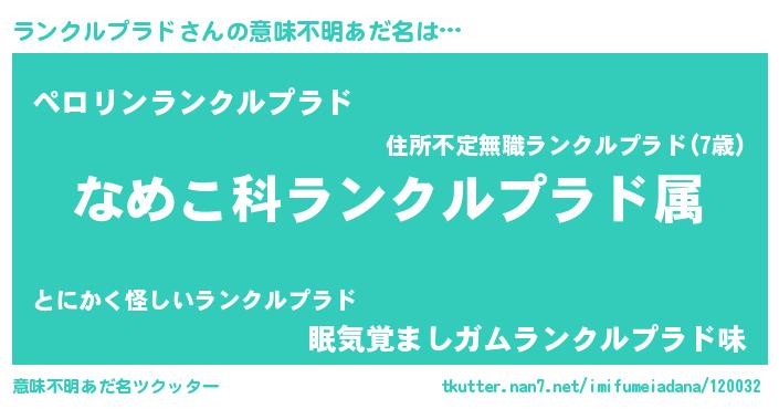 | 欧米人風あだ名 | 『トリンドルランクルプラド』 |