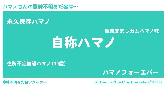 | ヘコむあだ名 | 『ハマノ(苦笑)』『牛乳』『ハマもー』 |