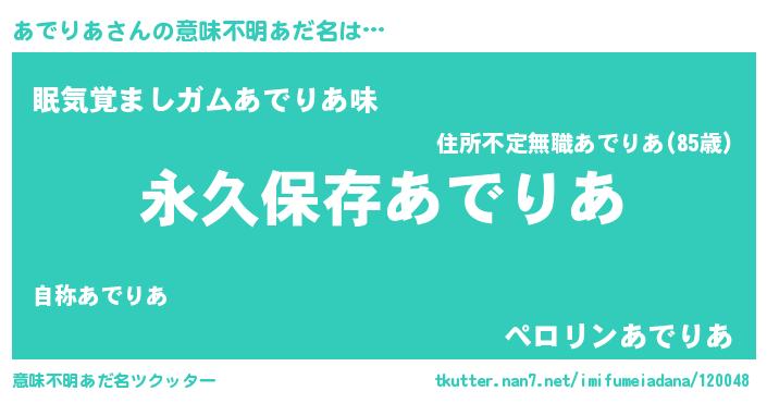 | ヒーロー風カッコイイあだ名 | 『ネオアデリア』『正義の使者あでりあ』 |
