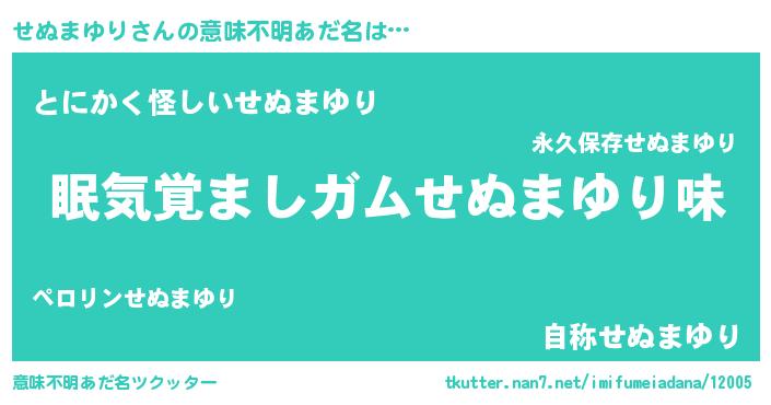 | 男性向けラノベタイトル風あだ名 | 『うちのせぬまゆりが世界を掌握している!』 |