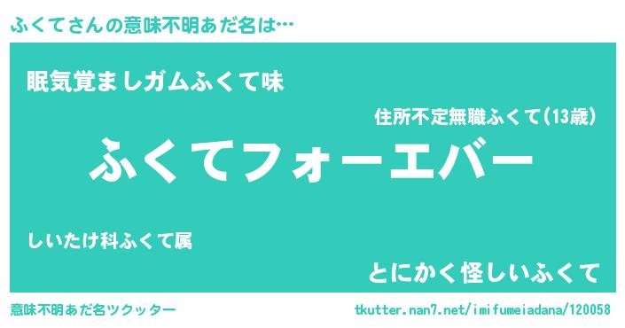 | 女子向けラノベタイトル風あだ名 | 『ふくての雑貨屋さん』『ふくて恋絵巻』 |