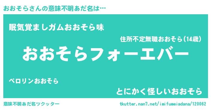 | 男性向けラノベタイトル風あだ名 | 『はたらくおおそらさま!』 |