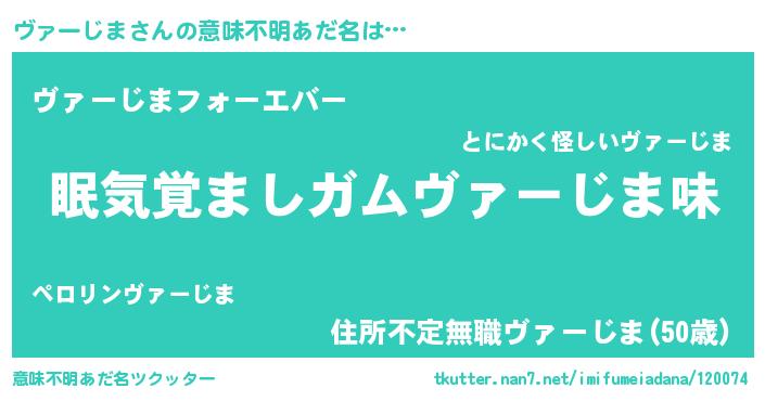 | 男性向けラノベタイトル風あだ名 | 『おまえをオタクにしてやるから、俺をヴァーじまにしてくれ! 』 |