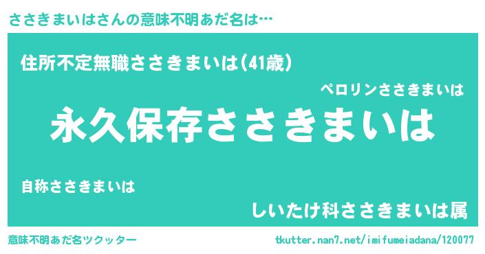 | 男性向けラノベタイトル風あだ名 | 『ささきまいはという概念が存在しない退屈な世界 』 |