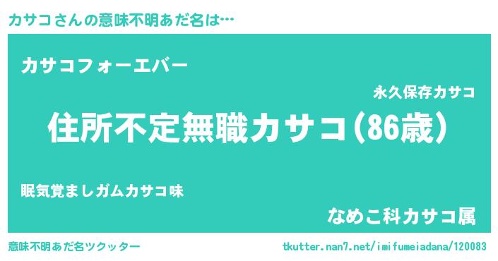 | 男性向けラノベタイトル風あだ名 | 『うちのカサコが世界を掌握している!』 |