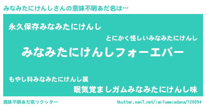 | 男性向けラノベタイトル風あだ名 | 『やはりみなみたにけんしの青春ラブコメはまちがっている 』 |