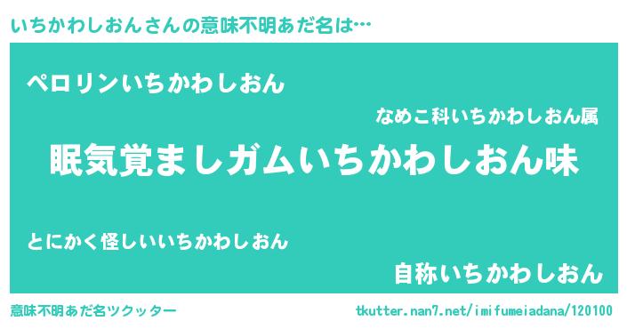 | 男性向けラノベタイトル風あだ名 | 『おまえをオタクにしてやるから、俺をいちかわしおんにしてくれ! 』 |