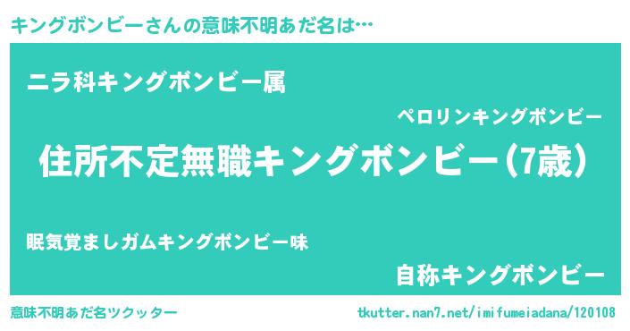 | 胡散臭い通販商品みたいなあだ名 | 『あなたにだけ特別に提供する100年もののヴィンテージワイン…その名も「キングボンビー」』 |