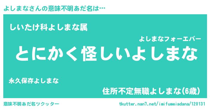 | 欧米人風あだ名 | 『よしまな・ステッグマイヤー』 |