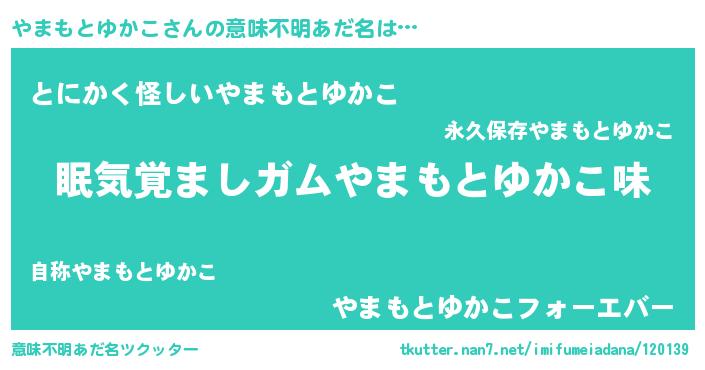 | ポケモン風あだ名 | 『ヤックウザ』『ヒヤマモトユカコ』 |