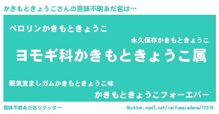 | 男性向けラノベタイトル風あだ名 | 『かきもときょうこ~年齢イコール彼女いない歴の魔法使い~』 |